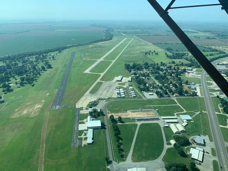 At Kennett, weather was good and avgas cheap, so I practiced some touch and goes, before I continued to the West Branson airport (KFWB) in Missouri and parked my 140 next to 3 others.