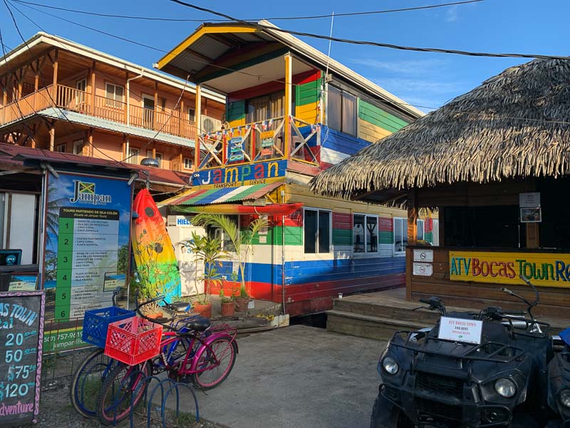 February 26th, we drove to Almirante, the Banana shipping port where the water taxis to Bocas del Toro depart. Most people fly to Bocas, prefering the 1 hour flight over the 10 hour drive from Panama City. But we drove the long and windy roades. Even from Boquete it was still a 4 hour drive. When entering Almirante, boys on bicycles offer a follow-me service, guiding you to the parking places for your car. These parking places are basically private garden properties misused for this purpose. They cost between 3 to 5 dollar per day and the boys on the bikes get a dollar too.