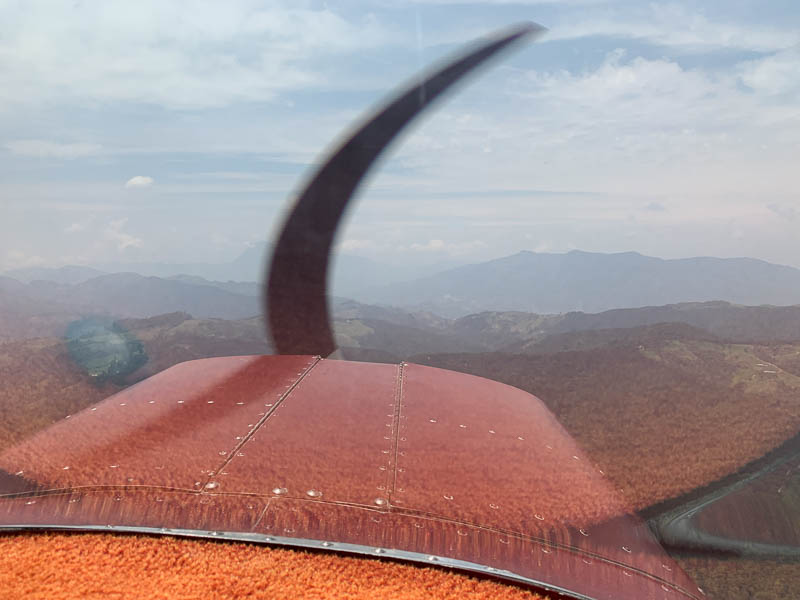 As in Los Cedros, I filed my flight plan directly in the tower. Controller spoke perfect English. Where did you get your accent? I asked. In Medellin, he said. Refueled out of jerry cans, requested startup and taxied onto the runway.