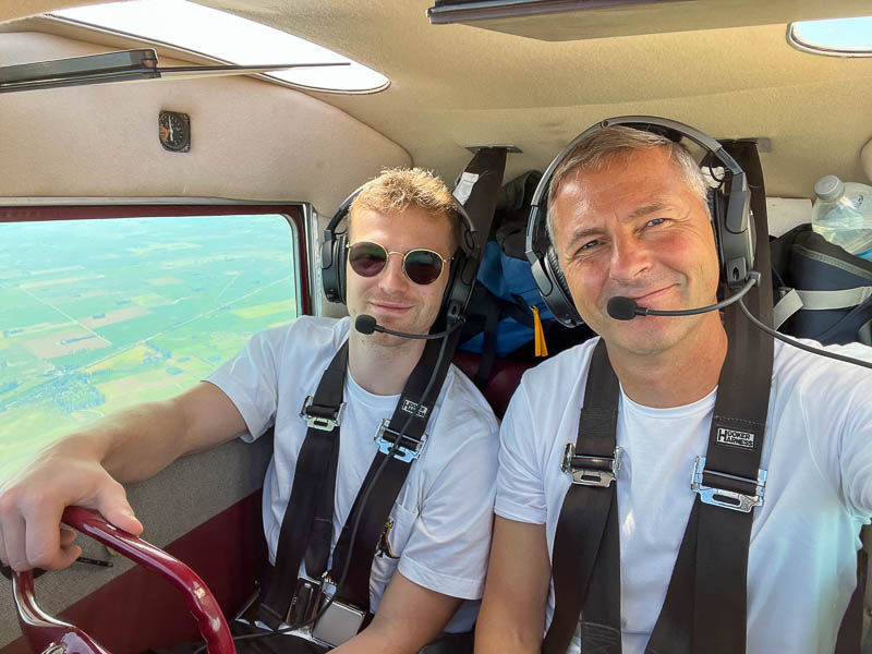 A 140 is a 2-seater aircraft made for initial flight training. Neither Leon, nor I carry the weight of the average 2023-american man, but we are probably heavier than the average 1947-american, for who the little aircraft had been built. You don’t need to be a weight & balance expert to know that baggage mass must be strictly limited to allow to carry the necessary fuel.