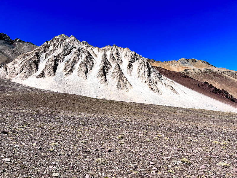 Going down, mighty Aconcagua came into view. The area around it is crowded, they say. Many people want to hike there. You have to make an online reservation and buy an expensive ticket, we found out. Not what we wanted. On our whole 5-day hiking trip, we saw no other human being.